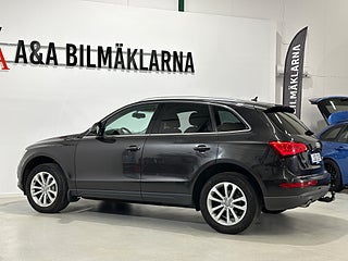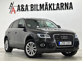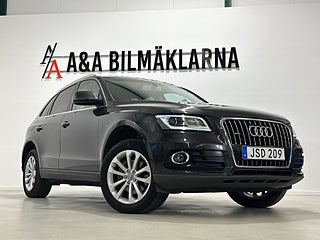 Audi Q5 i exklusiv Lava Grey Pearl Effect. Utrustad med navigationssystem, telefonanslutning (Bluetooth) och dragkrok. En rymlig och komfortabel SUV med hög kvalitetskänsla, perfekt för både vardag och längre resor. Stilren, praktisk och körklar.