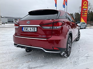 En lyxig Lexus RX450 h Hybrid (2020 facelift) med 3.5 V6 på 313 hk, AWD fyrhjulsdrift och steglös automatlåda E-CVT.