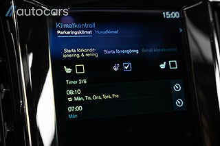 Tekniknivån är hög med bland annat adaptiv farthållare, 360° kamera, parkeringssensorer fram och bak, backkamera samt avancerade säkerhetssystem som dödvinkelvarning, filhållningsassistent, Cross Traffic Alert och helljusassistans. Parkeringsvärmare med tid- och fjärrstyrning samt Volvo On Call bidrar till extra komfort året runt.
