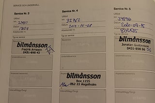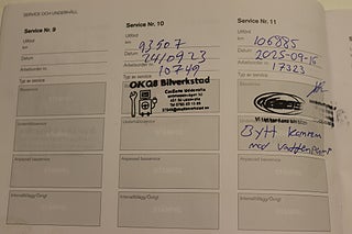 Fordonets historik - 16 händelser finns registrerade