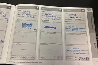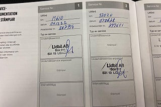 Fordonets historik - 30 händelser finns registrerade