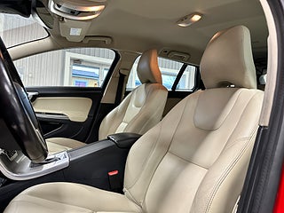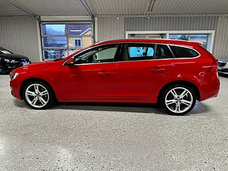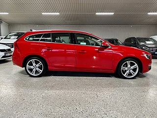 Vi har en snygg Volvo V60 i en vacker nypolerad röd färg men beige skinn inredning för en exklusiv känsla. En mycket användbar storlek på bil med den populära vidare utvecklade diesel motorn från Volvo, nu med 190hk och lägre bränsleförbrukning än tidigare. Detta medför också lägre skatt än den tidigare modellen.
