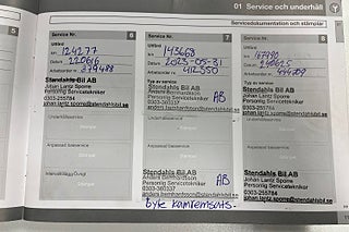 Fordonets historik - 20 händelser finns registrerade
