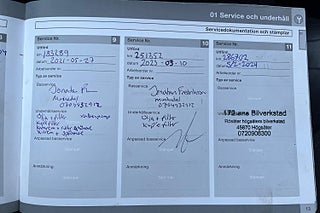 Fordonets historik - 24 händelser finns registrerade