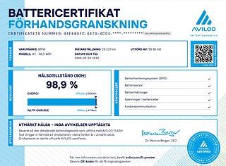 Bilen är utrustad med Premium Paket och adaptivt LED-paket som höjer både komfort och säkerhet. Parkeringsvärme och värmesystem gör bilen optimal för nordiskt klimat, medan panoramaglastak och taklucka skapar en ljus och luftig kupé.