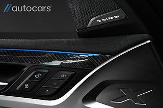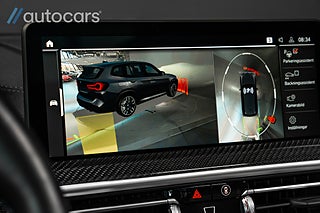 Interiören är en uppvisning i modern lyx. M-sportpaketet omfamnar dig med sportstolar klädda i exklusiva material, och M-kolfiberlister löper som precisa penseldrag genom kupén, en påminnelse om att detta inte är någon vanlig SUV, utan ett statement i rörelse. Det öppningsbara panoramaglastaket låter ljuset flöda in, medan Harman Kardon Surround Sound System fyller utrymmet med kristallklart ljud i varje tonläge.