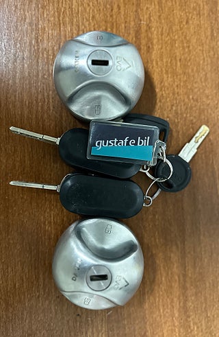2 nycklar samt extra nycklar till dörr lås.