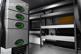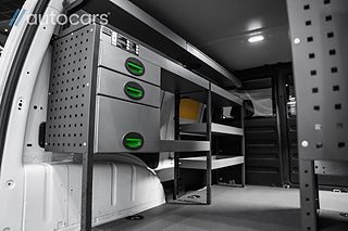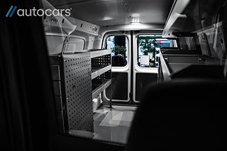 Invändigt möts du av en genomarbetad verkstadsinredning från System Edström där varje hylla, låda och hurts är placerad med ett enda syfte, effektivitet. Ordning och överblick sparar tid, minskar stress och höjer professionalismen i varje kundmöte. De dubbla skjutdörrarna ger fri access från båda sidor och förvandlar skåpet till en arbetsyta som alltid är lättillgänglig, oavsett hur trångt du står parkerad. Extra arbetsbelysning bak gör att arbetet fortsätter obehindrat även när mörkret faller, samtidigt som blixtljusrampen på taket skapar synlighet och säkerhet där det behövs som mest.