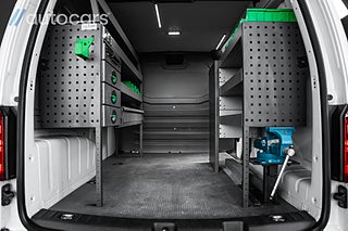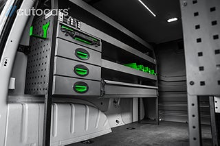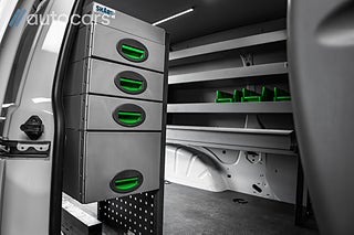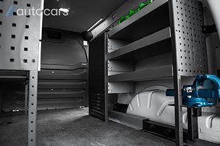Lastutrymmet är byggt för yrkesproffs. Verkstadsinredning från System Edström med hyllsystem, sortimentlådor och hurts med lådor ger ordning, struktur och snabb åtkomst till verktyg och material. Skåpet är dessutom inklätt med modern LED belysning i taket som ger optimal arbetsbelysning under alla förhållanden. Det utdragbara skruvstädet direkt från skåpet gör bilen till en mobil verkstad, redo för arbete var du än befinner dig.