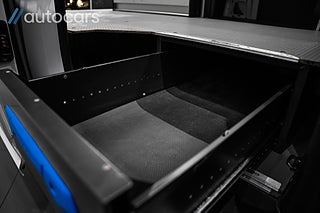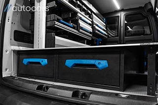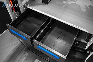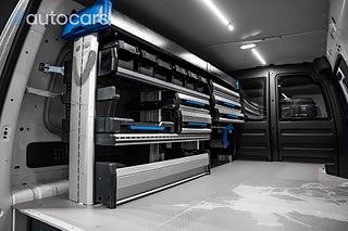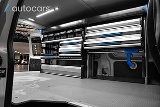 Detta exemplar är utrustat med en proffsbyggd Sortimo inredning, installerad av Berga Bil-El utan kompromisser. Här erbjuds dubbelgolv med utdragbara lådor, inklätt skåp med kraftfull LED-belysning samt lådhurts och flexibelt hyllsystem med enkel åtkomst. Hyllplanen kan smidigt anpassas efter behov, vilket skapar en arbetsmiljö som är både effektiv och organiserad.