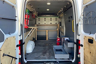 En verkstadsinredd Volkswagen Crafter av modellår 2018 med en mätarställning på 15 086 mil. Momsen är avdragbar och bilen är tillgänglig för företagsleasing. Levereras nybesiktigad.