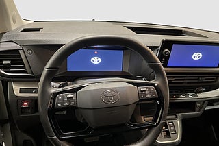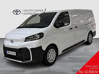 Välkommen till Toyota Centers två fullserviceanläggningar i Göteborg belägna på Hisingen (Bäckebol) och i Mölndal (Söderleden). Vi säljer nya och begagnade bilar, tjänstebilar, reservdelar och däck. Vi har även däckhotell, biluthyrning, skade- och plåtverkstad. Vår Toyota-Verkstad är öppen 7 dagar i veckan (Mölndal). Se aktuella öppettider på https://toyotagoteborg.se, Ratt med kontroll för farthållare placerad bakom ratten,Passagerarsäte med genomlastningsmöjlighet Smart Cargo,Krockkuddar förare och passagerare fram,Bakdörrar dubbla öppningsbara 180 grader,Ratt med styrningskontroll för körfilsvarning (LDA),Informationsdisplay med 10-tums skärm,Passagerarsäte fram med 2 sittplatser,Fönsterhissar med automatisk upp/ner-funktion,Förvaringsfack öppet instrumentpanelens ovansida,Vindrutans spolarmunstycken eluppvärmda,Ej med luftventil för luftkonditionering för baksätespassagerare,Ratt med styrningskontroll för audio,Toyota Smart Connect+ multimediasystem med Smartphone Integration Apple CarPlay (trådlös) och Android Auto (kabel) och inbyggd navigation,Skyddslister längs sidodörrarnas nederkant svarta,Passagerarsäte fram ej med svankstöd,Belysning framsäte kupébelysning fram glödlampa,Andra sätesraden ryggstöden ej lutningsbara,Luftintag på sidorna med svart infattning,Förar- och passagerarplats fram med läslampor,Skjutbara dörrar dubbla dörrar manuella,Luftintag mittre med svart infattning,Driver Attention Alert uppmärksammar föraren att ta en paus,Hastighetsmätare digital tillägg i informationsdisplayen,Körfilsvarning med körfilsassistans (LDA),Varningssystem för lågt däcktryck (TPWS)