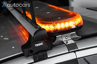 Bilen är även utrustad med blixtljusramp på taket och blixtljus baktill, vilket gör den idealisk för yrkesbruk där synlighet är avgörande. Den kromade frontbågen med tre extraljus förstärker både utseende och funktion, medan sidesteps gör insteget enkelt och bekvämt.