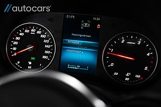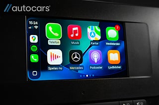 Kupén är utrustad med läderklädd multifunktionsratt, ett MBUX multimediasystem med 7" pekskärm samt full integration för Apple CarPlay och Android Auto. Här finns även backkamera, parkeringssensorer fram och bak samt en avancerad 360° kamera som gör manövrering på trånga utrymmen till en barnlek. Föraren sitter bekvämt i en komfortstol med armstöd och utdragbart lårstöd.