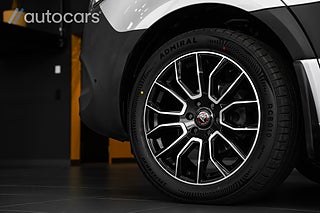 Här möts du av en genomgående premiumkänsla där varje detalj är noggrant utvald för att skapa ett exklusivt helhetsintryck. Exteriören imponerar med den eleganta lacken Iridium Silver Metallic, en färg som framhäver bilens linjer och ger ett uttryck i alla ljusförhållanden. Tillsammans med blanksvarta 20 tums Wolfrace fälgar skapas en sportig och kraftfull look som verkligen drar blickarna till sig. Bilens avancerade LED High Performance strålkastare ger inte bara ett modernt utseende, utan erbjuder en enastående ljusstyrka som gör mörkerkörning till en ren fröjd.