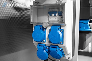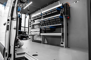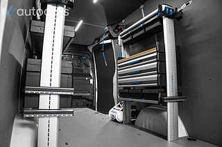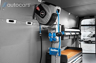 Bakom förarhytten väntar ett skåp som är byggt med hög precision. Inklätt, utrustat med LED belysning som aktiveras via rörelsesensor och komplett Sortimo inredning med arbetsbänk, hyllor, lådor och utdragbara förvaringslösningar, allt optimerat för effektivitet. Kraftfull 230V inverter på 2000W, luftkompressor med slangvinda samt separat Webasto värme som skapar ett behagligt och funktionellt arbetsklimat även under de kallaste dagarna.