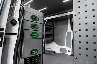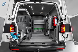 Vw Transporter med längsta skåpet och dubbla skjutdörrar, nu hemma i lager och med en inredning som får den mest kräsne att bli imponerad. Fulländad servicebil framtagen för den professionella användaren som kräver det bästa i både form, funktion och estetik. Här kombineras robust prestanda med exklusiva materialval och kompromisslös byggkvalitet.
