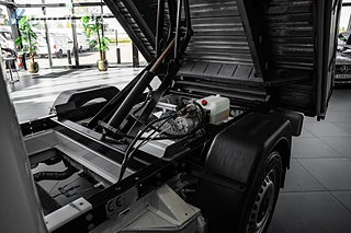 Här får du en genomtänkt och yrkesanpassad byggnation där ingenting lämnats åt slumpen. Det rejäla tippflaket från Floby Autokaross med fällbara lämmar gör lastningen smidig och effektiv, medan blixtljus både fram och bak som ger optimal synlighet på arbetsplatsen. Dragkroken klarar dessutom hela 2 500 kg släpvagnsvikt.