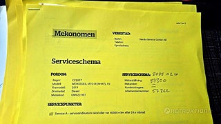 - löst servicedokument i bilen daterad 2025-02-10 vid 8 730 mil