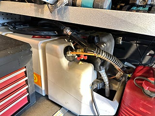 Pumpmunstycke och slangsystem kopplat till tanken